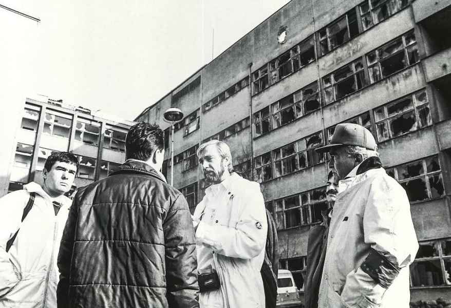 Članovi promatračke misije Europske zajednice ispred Vinkovačke bolnice.