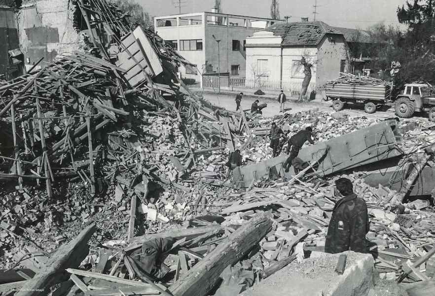 Ruševine Doma omladine u Vinkovcima. Ulica Jurja Dalmatinca.