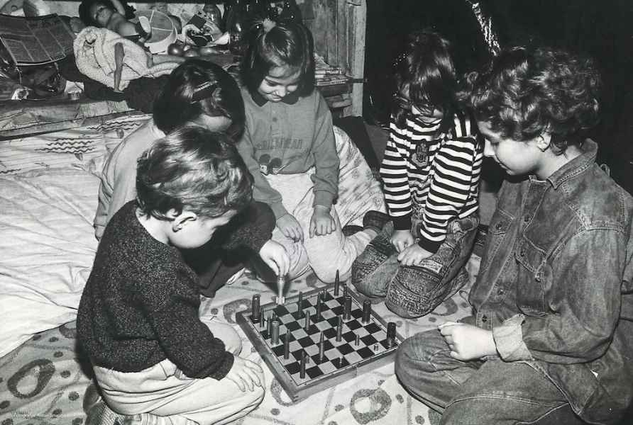 Djeca u podrumu („skloništu“) stambene zgrade u Vinkovcima.