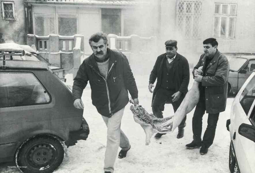 Ratna svinjokolja u Vinkovcima. Prizor iz ulice Jurja Dalmatinca.