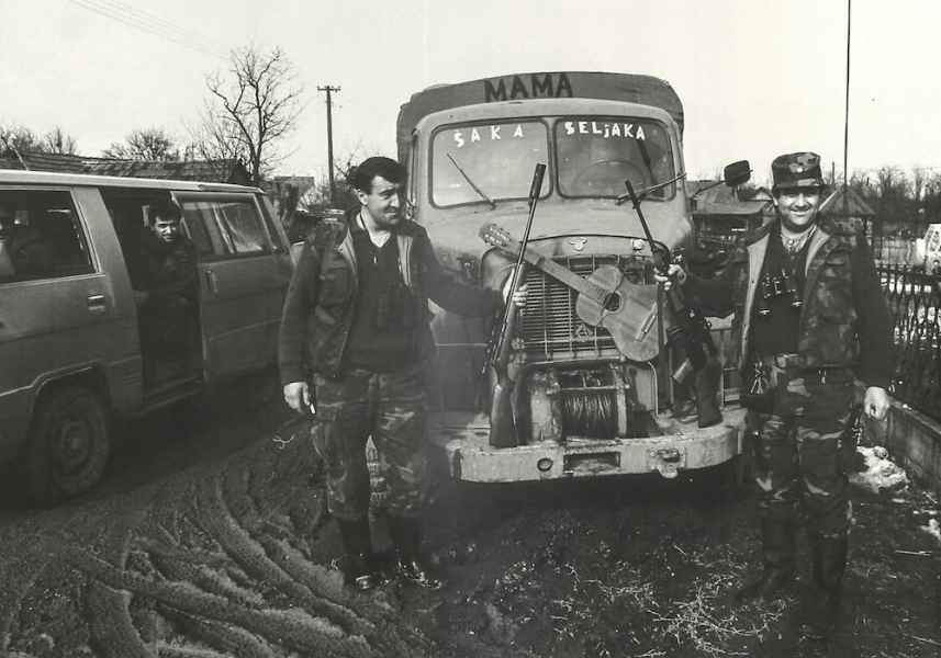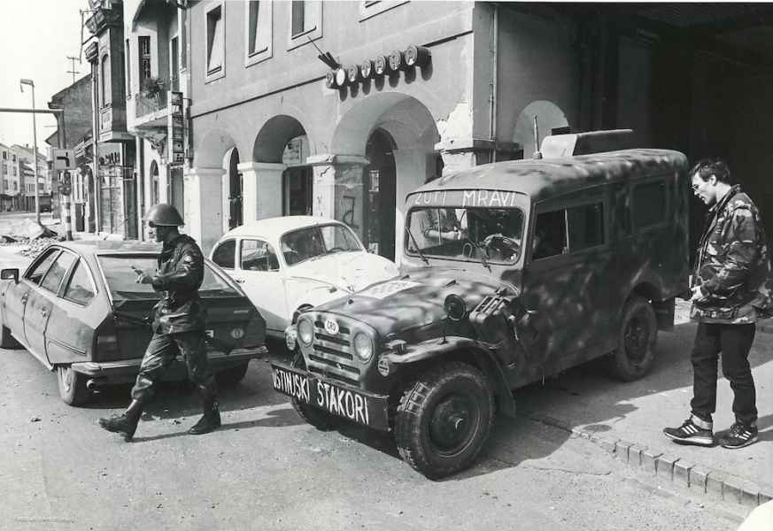 Sanitetski vod „Krmače“ u centru Nuštra u društvu jednog fotografa.