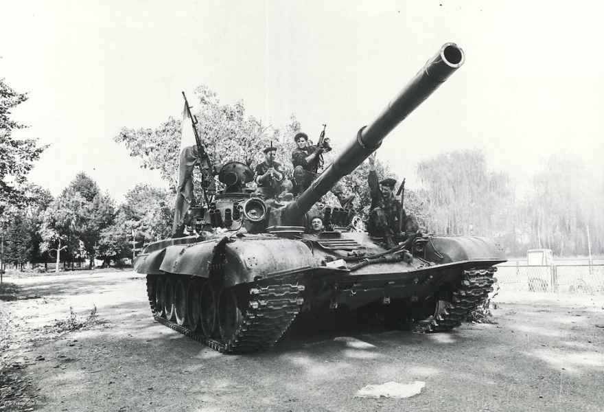 Hrvatski branitelji na prvim (zarobljenim) tenkovima.